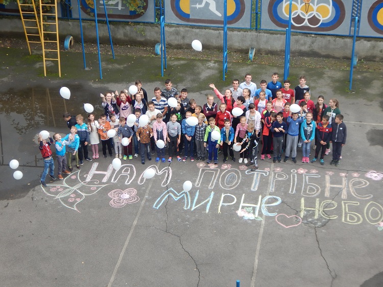 У Міжнародний день миру учні та педагоги школи провели патріотичну акцію «Голуб миру», аби разом висловити своє прагнення жити в мирі. Всі учасники акції старанно