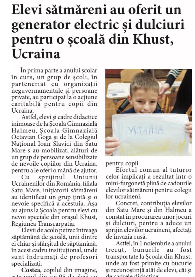 Публікація про Хустську спеціальну школу І-ІІІ ступенів Закарпатської обласної ради в румунській пресі – газеті “Informatia Zilei”. У статті – розповідь про нашу школу та