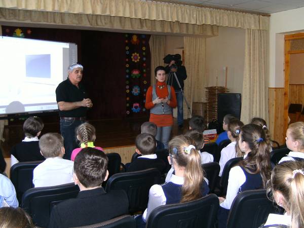 Зустріч учнівського та педагогічного колективів із Станіславом Стояновським, заслуженим працівником України. Автор представив свій документальний фільм «Через горнило воїн і пожеж».