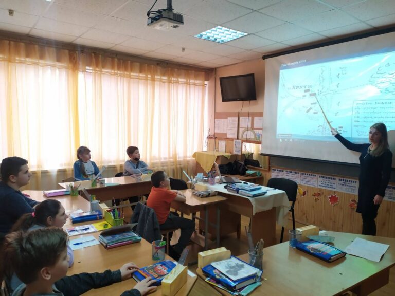 З нагоди відзначення в Україні дня пам’яті героїв Крут в нашій школі були проведені виховні заняття та години спілкування з метою ознайомити учнів з подіями