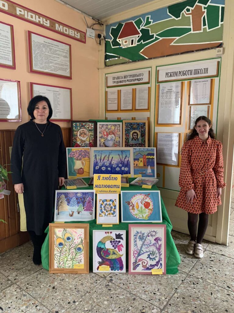 Натхненний світ творчості в кожному куточку Хустської спеціальної школи. Цього тижня стартувала авторська виставка картин учениці сьомого класу Софії Яцури: «Я люблю малювати». «Творчі роботи