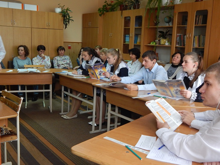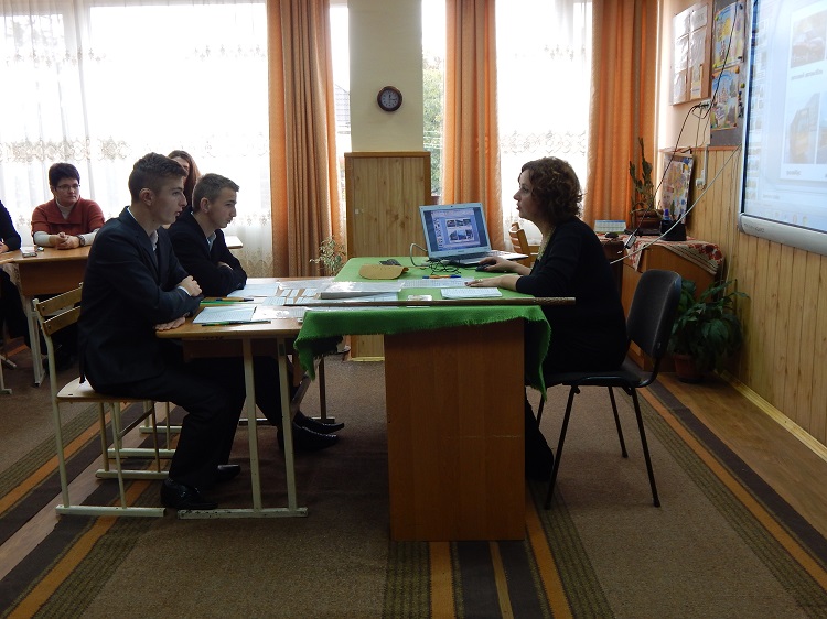 Учнів дев’ятого класу на уроці з розвитку слухового сприймання та формування вимови знайомили з столицею України – Києвом. Вчителька Цедик І.І. допомагала виправляти вимовні навички звуків С-Ч, використовуючи спеціальну комп’ютерну програму „Адаптація Лого”.
