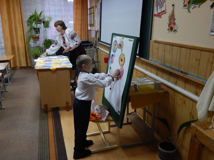 На виховному занятті у 2 класі вихователь Драгула М.М. знайомила учнів з українськими символами. Активно і зацікавлено включилися другокласники до роботи над українським віночком.