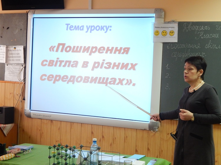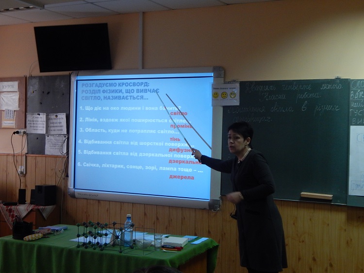 Відкритий урок з фізики у 7 класі вчитель Сабадош Ірина Олександрівна провела на тему: «Поширення світла у різних середовищах. Педагог ознайомила учнів із сутністю природного явища заломлення світла та причиною появи такого явища. Згідно плану уроку було проведено досліди з заломлення світла в різних природних середовищах; виявлено, при яких умовах світло заломлюється як якісно, так і кількісно; учні спостерігали і пояснювали явище заломлення світла на прикладах: у природі, в побуті, в техніці; дізналися, що таке міражі, оптичні фокуси, збагатили словник, розширили кругозір в дослідженнях природи світла.