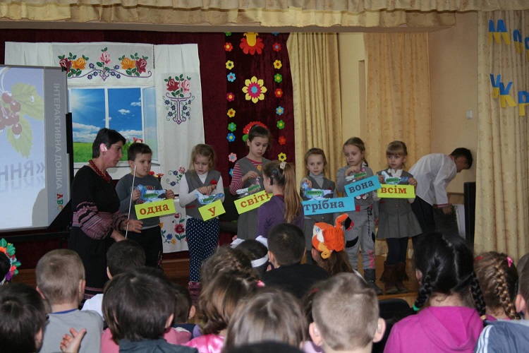 Високу креативність в організації та проведенні позакласних заходів показала під час проведення мовного ранку «Моя країна – Україна» інструктор слухового кабінету Лучка В.Ю. З метою інтеграції дітей з вадами слуху в чуюче середовище на позакласний захід було запрошено учнів 1-В класу ЗОШ №4 разом з вчителькою Мітру А.В. В учнів обох шкіл була хороша можливість встановити між собою теплі дружні відносини.