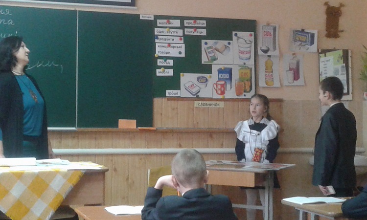 Розвивати словесну пам’ять, мислення, увагу, збагачувати словниковий запас, практично виконувати дії вчилися учні 2 класу зі вчителькою Брикун Вікторією Олександрівною на уроці розвитку мовлення. Відповідно підібрана презентація, ілюстрації, картки сприяли кращому засвоєнню теми «У магазині». Діти з допомогою гри «Продукти чи одяг» вчилися називати товар і відкладати його у потрібний відділ магазину. Цікаво проходив і діалог між продавцем і покупцем.