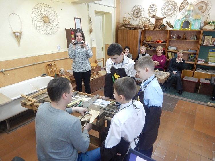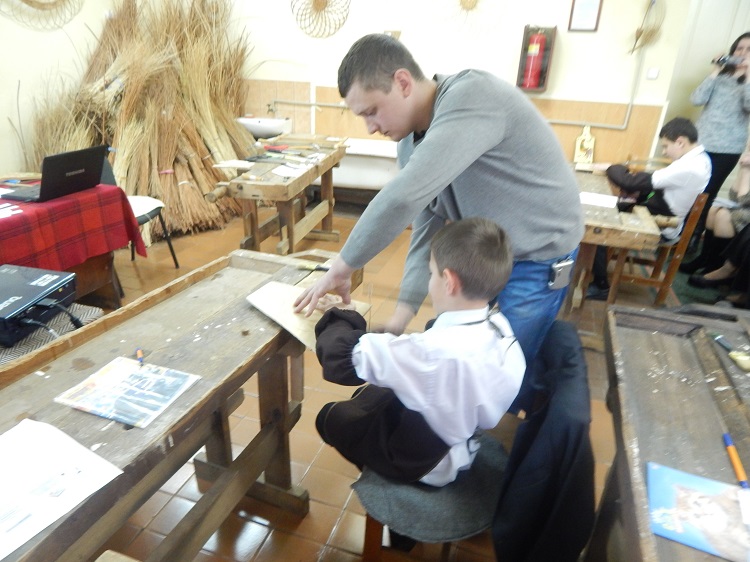 Вчитель трудового навчання Ком’яті Василь Олександрович провів відкритий урок у 5 класі на тему: «Пиляння лобзиком». Учні повторили назви вимірювальних інструментів, визначали вироби з дерева та фанери, ознайомились з інструментами для різання. На практичній роботі учні вчились пиляти лобзиком і почали виготовляти кухонну обробну дощечку, яку кожен подарує своїй мамі на свято.
