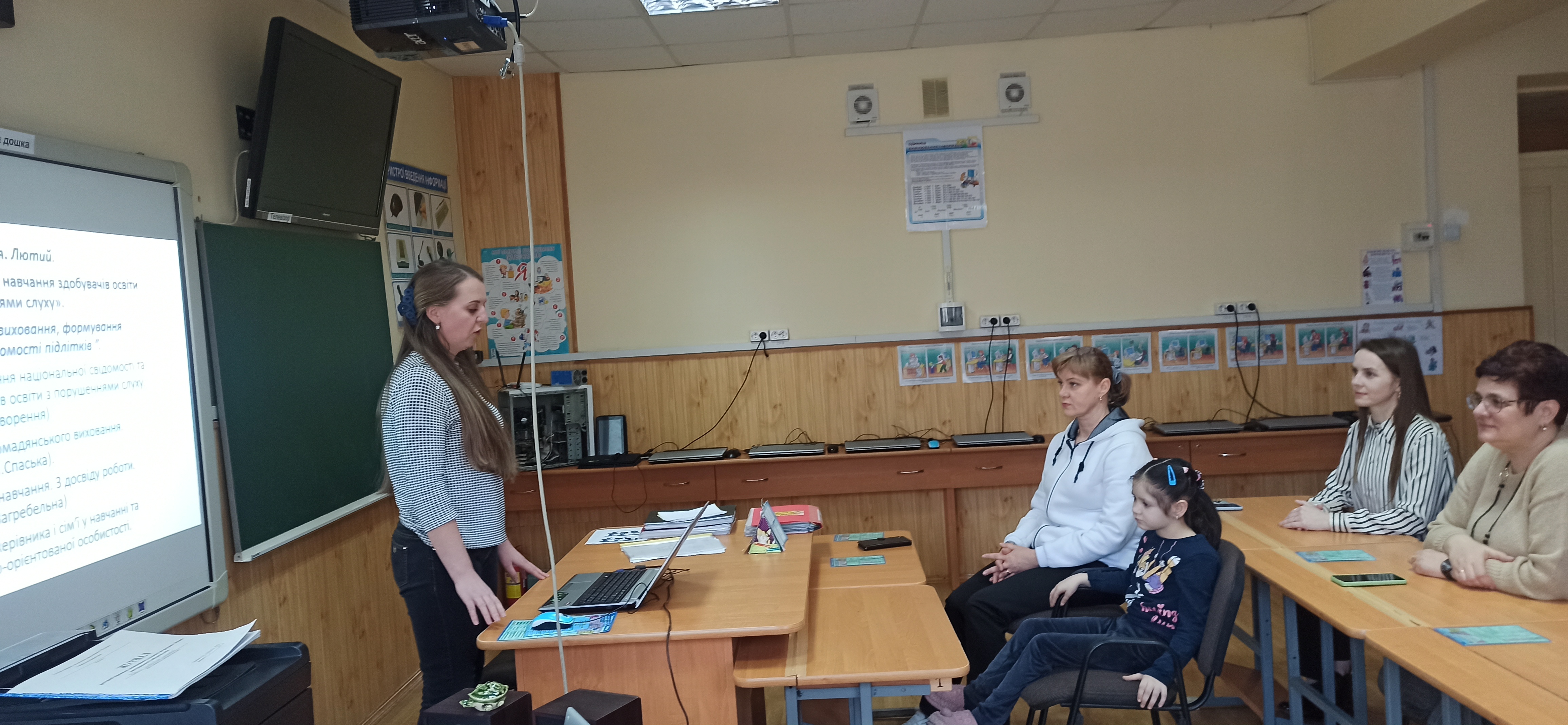 В ході засідання присутні ознайомилися з сучасними методами формування національної свідомості та самосвідомості в здобувачів освіти з порушеннями слуху, з досвідом роботи Загребельної Вікторії Олександрівни про білінгвальний метод навчання та взяли участь в обговоренні щодо співпраці класного керівника і сім′ї у навчанні та вихованні ціннісно-орієнтованої особистості.