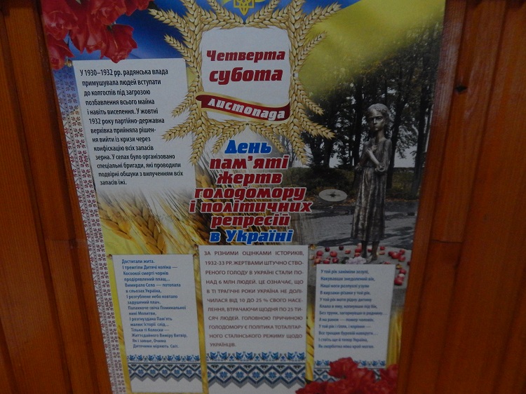 Багато літ пройшло. Здавалося би, можна й забути, але в серці кожного з нас живе і буде жити вічна пам'ять про найкривавішу трагедію людства – Голодомор на Україні 1932-1933 років. Четверта неділя листопада ще раз закликає кожного згадати ті трагічні дні та помолитися за кожну безвинно загублену душу.