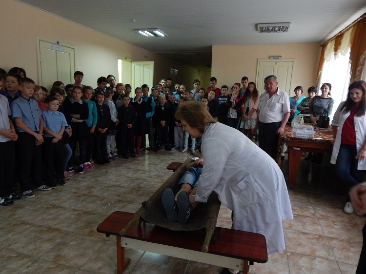 Під час показового Дня цивільного захисту в навчальному закладі фахівці розповіли про те, як надавати першу медичну допомогу, орієнтуватися на місцевості, провели показову евакуацію зі школи під час навчальної пожежі.
