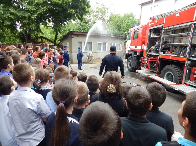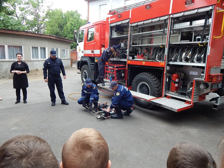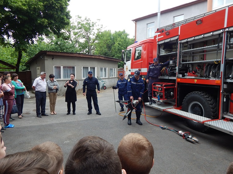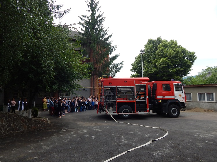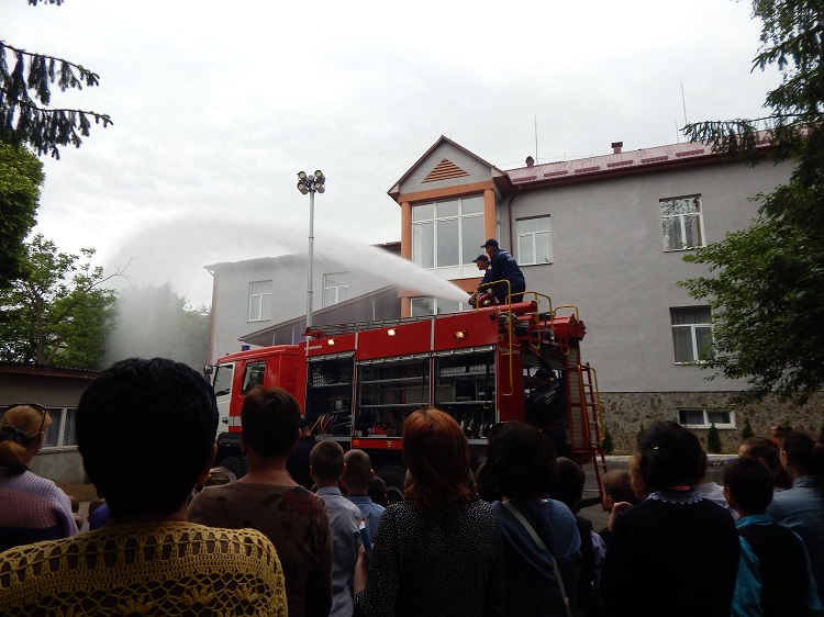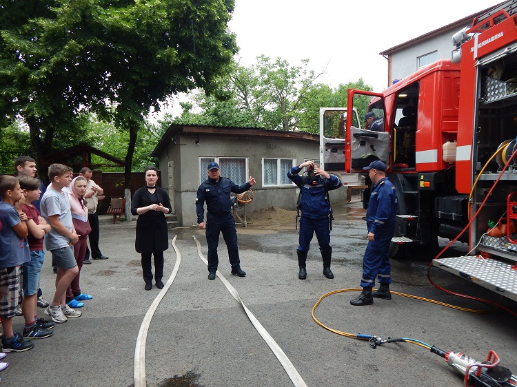 Вихованці мали змогу не тільки подивитися на практичні дії рятувальників, які ліквідували умовні пожежі, рятували людей з приміщень навчального закладу тощо, а й безпосередньо могли поспілкуватися з рятувальниками та побачити професійну пожежно-рятувальну техніку.