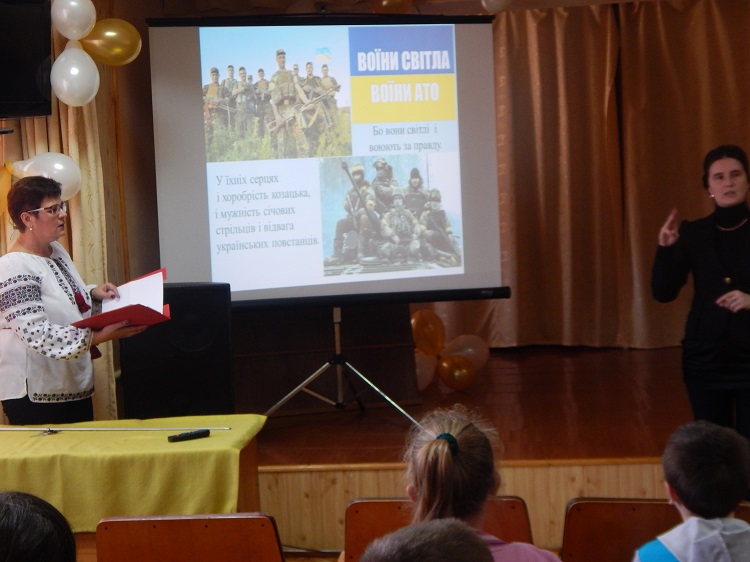 На святі учні довідались про всіх наших славних захисників: починаючи із козаків і до наших днів. Дізналися, що на захист України ставали козаки, січові стрільці воїни УПА. А у наші дні сучасні воїни-кіборги, воїни АТО. Хвилиною мовчання вшанували пам'ять загиблих воїнів.