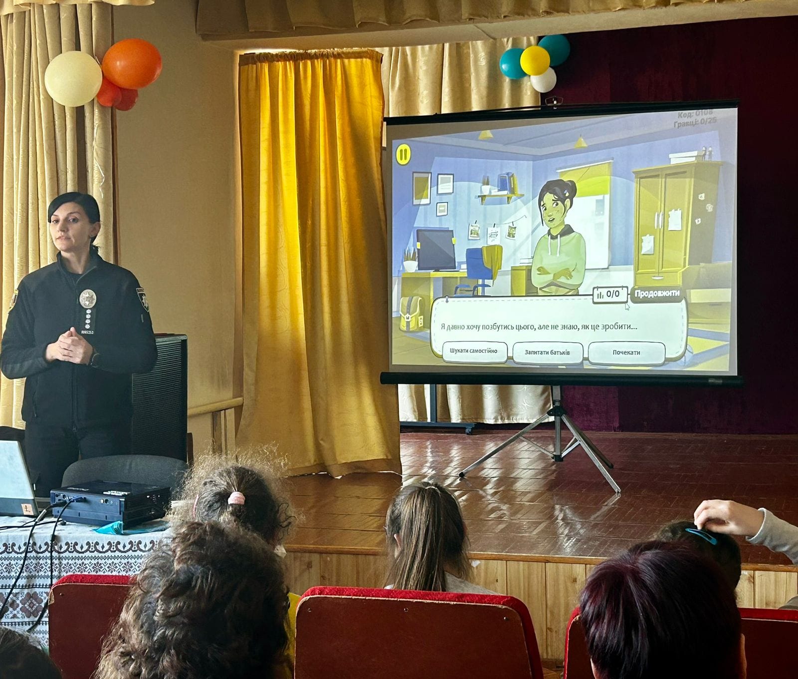 В простій і доступній формі працівниця органів пояснила про правила поведінки учнів на вулиці, в громадських місцях, школі. Обговорили проблему булінгу серед молоді.На закріплення обговореного провели інтерактивну гру «КРОК», що дала змогу закріпити навички кібербезпеки при користуванні інтернетом. Щиро дякуємо за цікавий, змістовний, інформативний захід.
