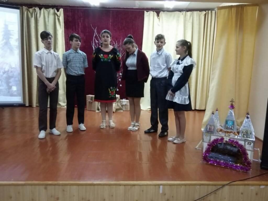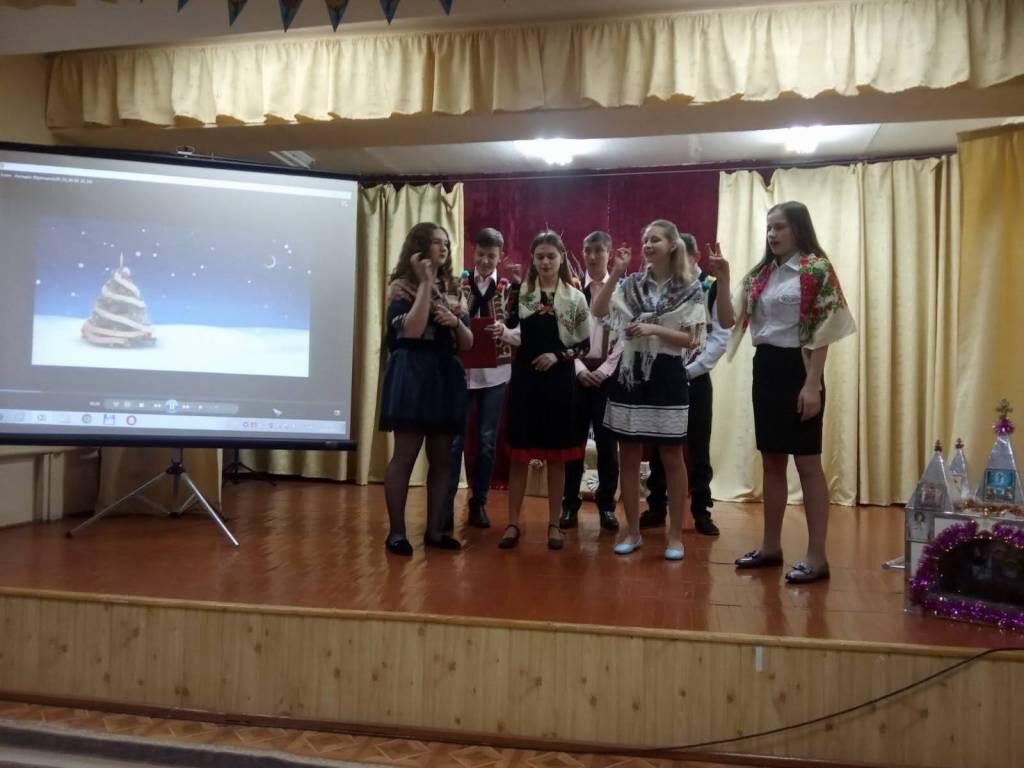 23 січня, з цієї нагоди в школі відбувся конкурс колядок та щедрівок, в якому взяли участь учні 5-12 класів. Учасники конкурсу демонстрували виконання традиційних різдвяних та сучасних колядок і щедрівок. До конкурсантів приєдналися найменші глядачі - це учень третього класу Данилюк А. та учень четвертого класу Літун К., які заколядували колядки їхнього району. Отож, за підсумками конкурсу було прийнято рішення, що всі учні молодці, добре підготувалися, особливо гарно й цікаво заколядували учнів восьмого класу (вихователь Спаська Ю.Л.)