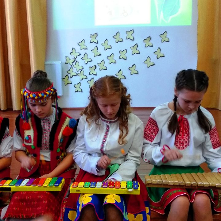 На святковий концерт учні підготували цікаву програму: танцювальні композиції "Гуцулка", "Місяць по небу ходить", вірш та пісню у жестовому виконанні, пантоміму "Добрий плід", в'язанку українських мелодій виконали учасники гуртка ксилофоністів.