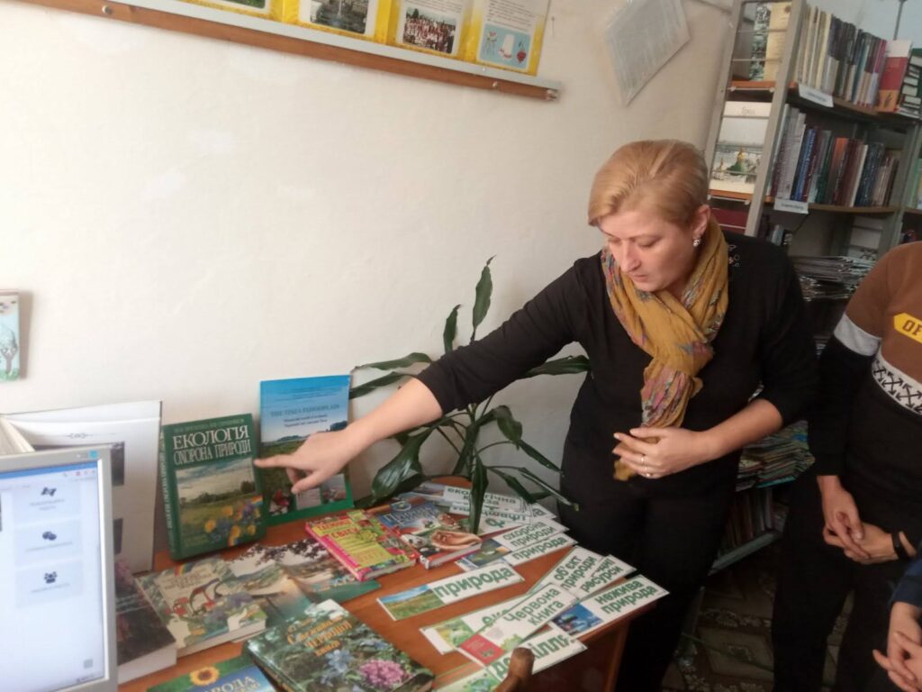 Всеукраїнський місячник шкільних бібліотек цьогоріч присвячений екологічній просвіті учнів. У процесі перегляду книжково-ілюстративної виставки вихованці школи, окрім ознайомлення з чудовими ілюстративними книгами про нашу державу, дізналися цікаві факти про природні зони країни, заповідники та необхідність збереження природи.