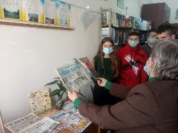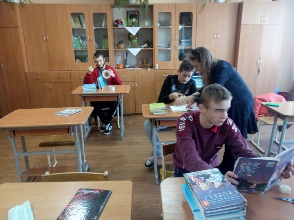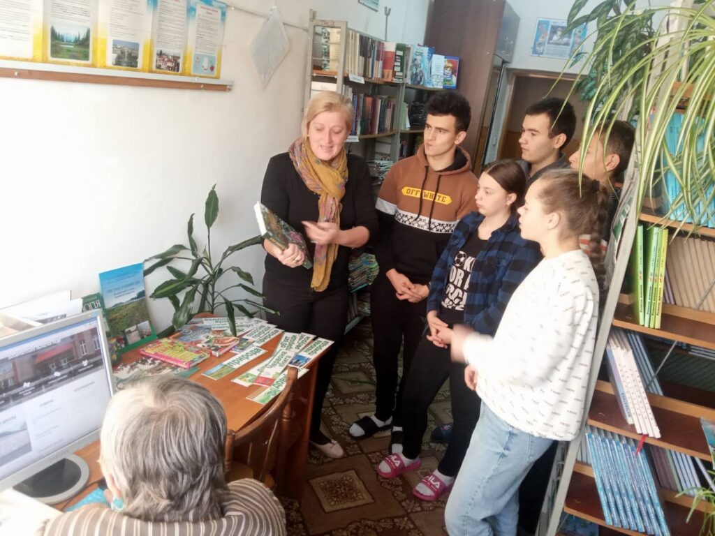У бібліотеці вчителька Шутко Н.М. провела мовну зарядку з учнями 10-го класу, ознайомивши їх з книгами та матеріалами преси на екологічну тематику.