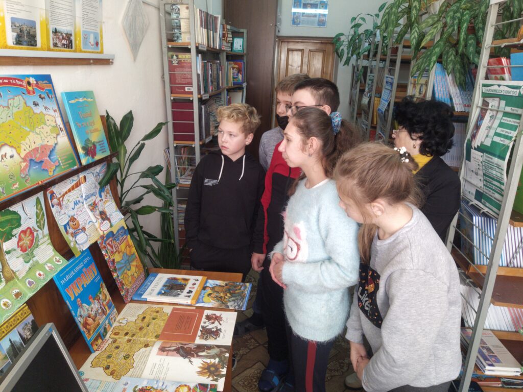 Під час бібліотечного уроку про традиції українців вихованці оглянули виставку в бібліотеці й поділилися враженнями від побаченого та розповіли про традиції святкування Різдва, Великодня, весілля в своїх селах та улюблені заняття краян.