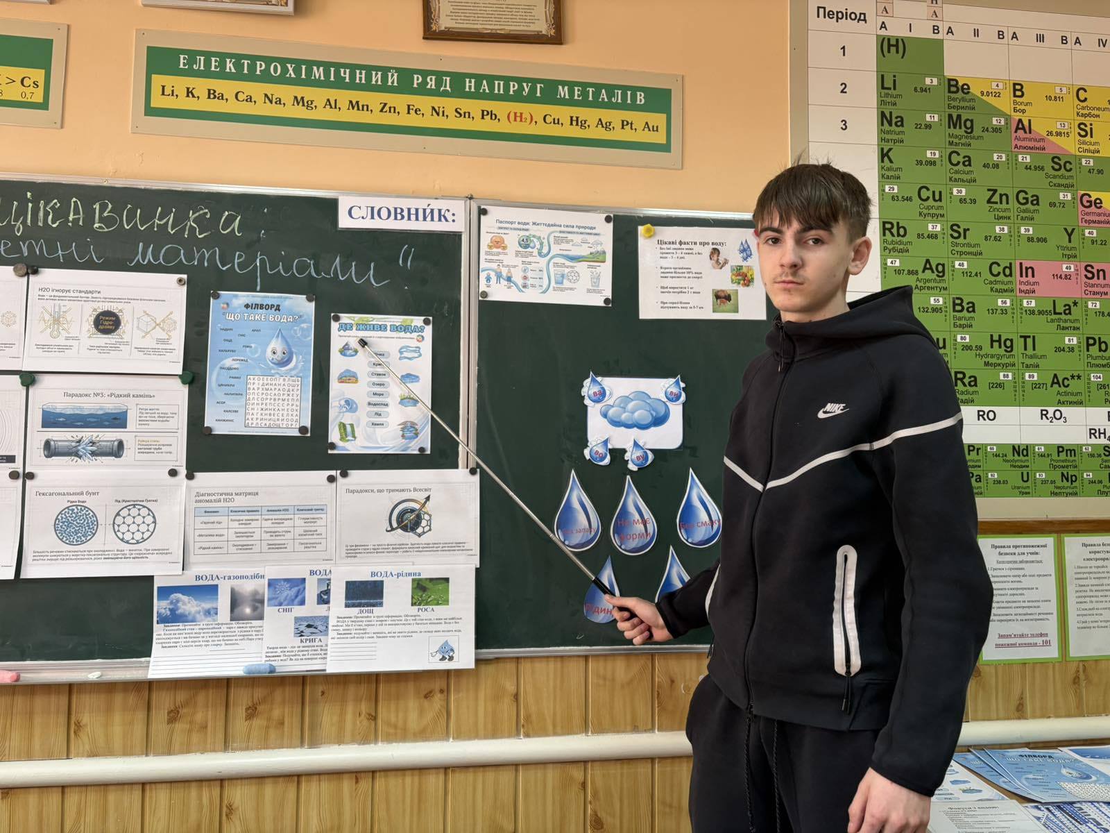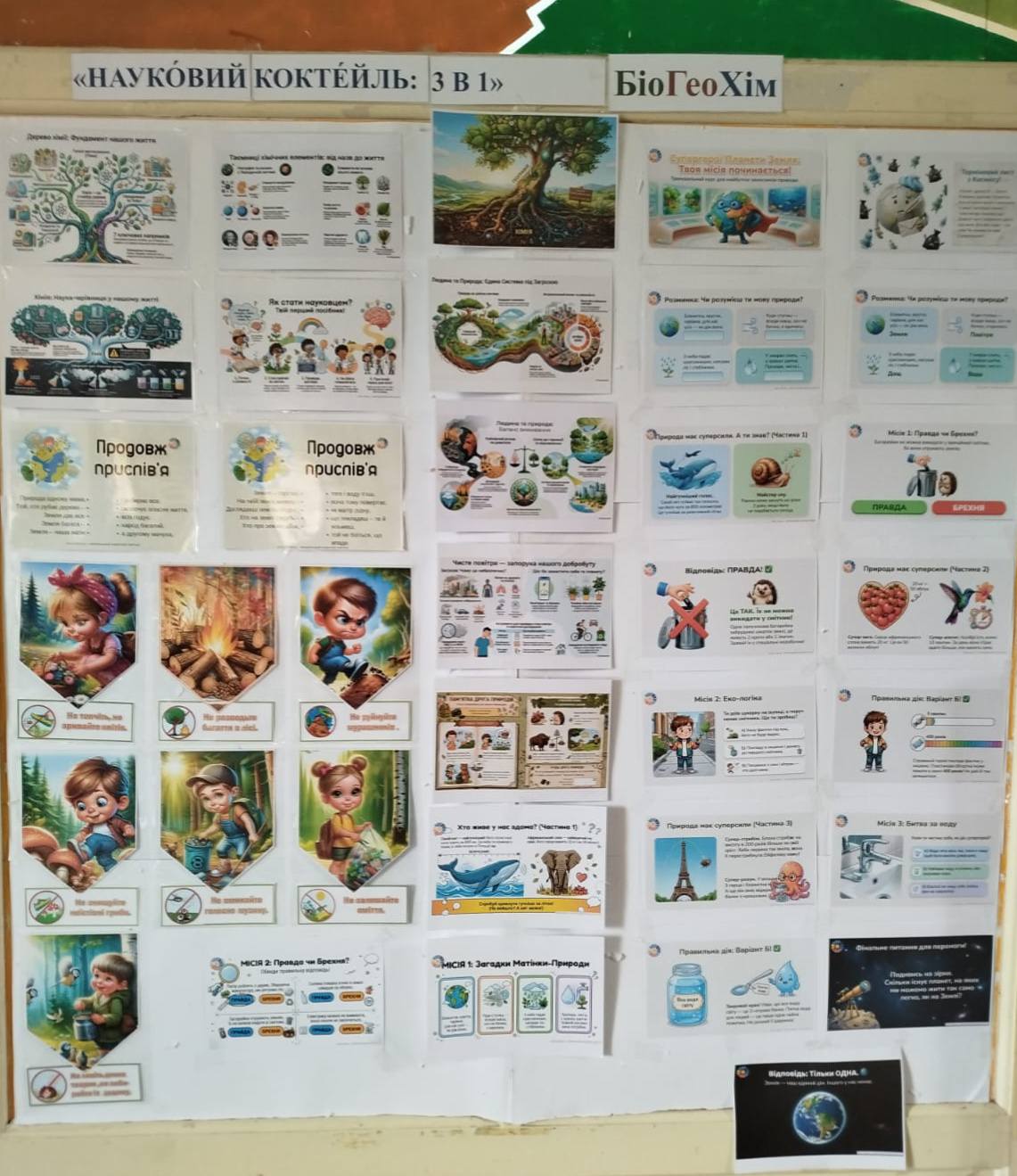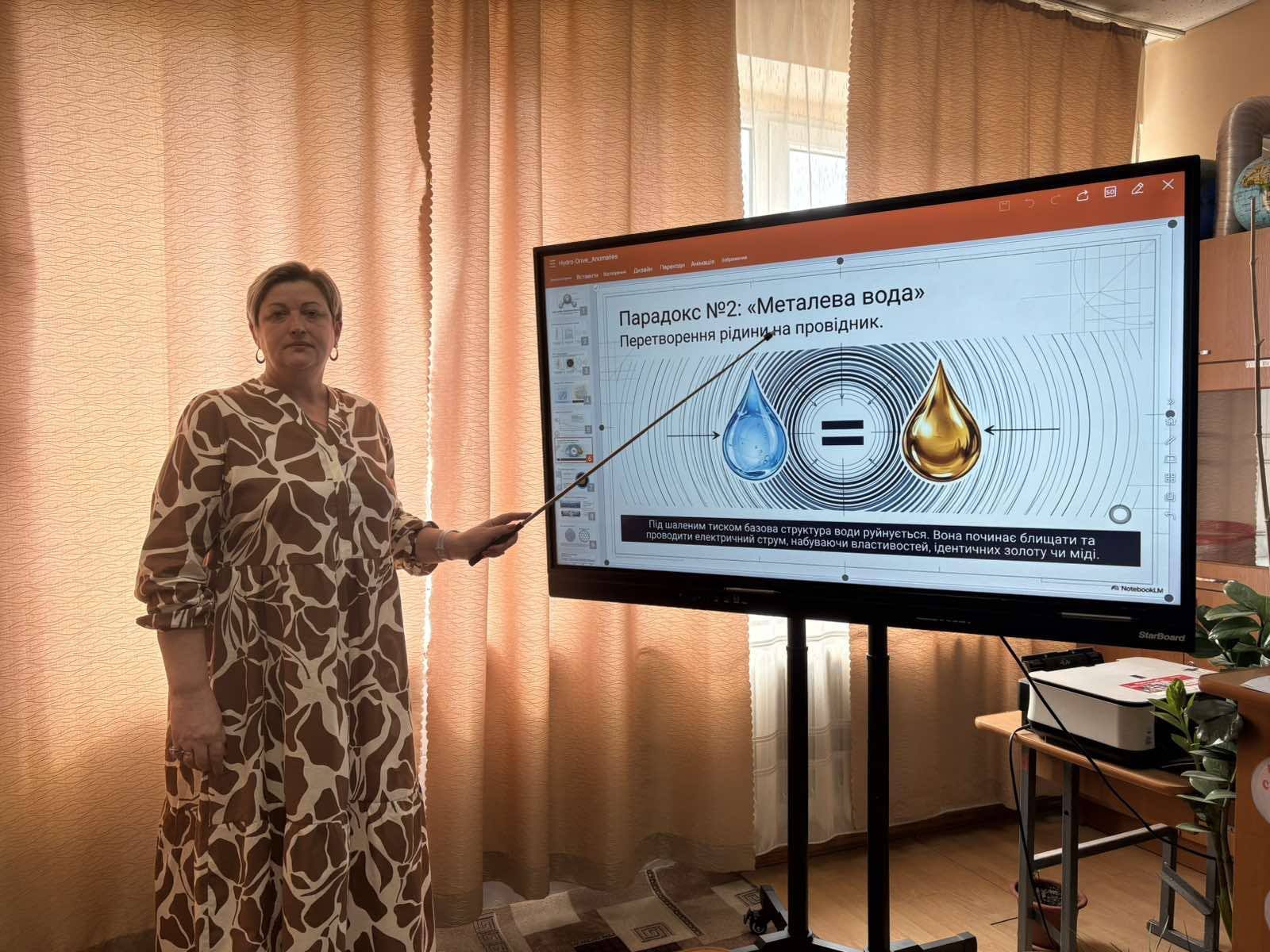 Стартували з оформлення креативного стенда «БіоГеоХім» із цікавинками та завданнями. Учні 9 та 12 класів на «Хвилинці-цікавинці» розкривали секретні матеріали про воду, дізнавшись про Топ-3 парадокси H2O, що суперечать стандартній логіці.