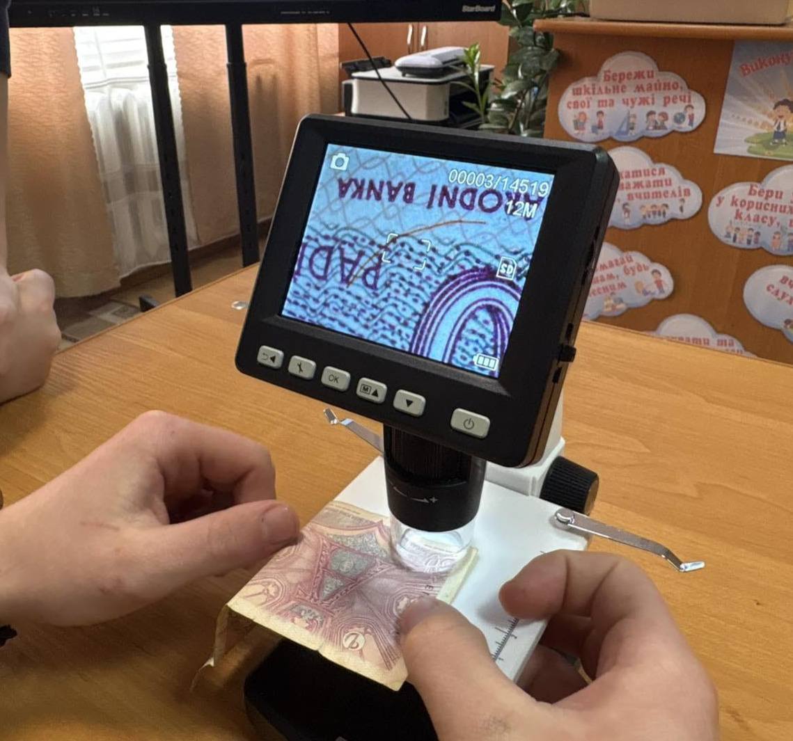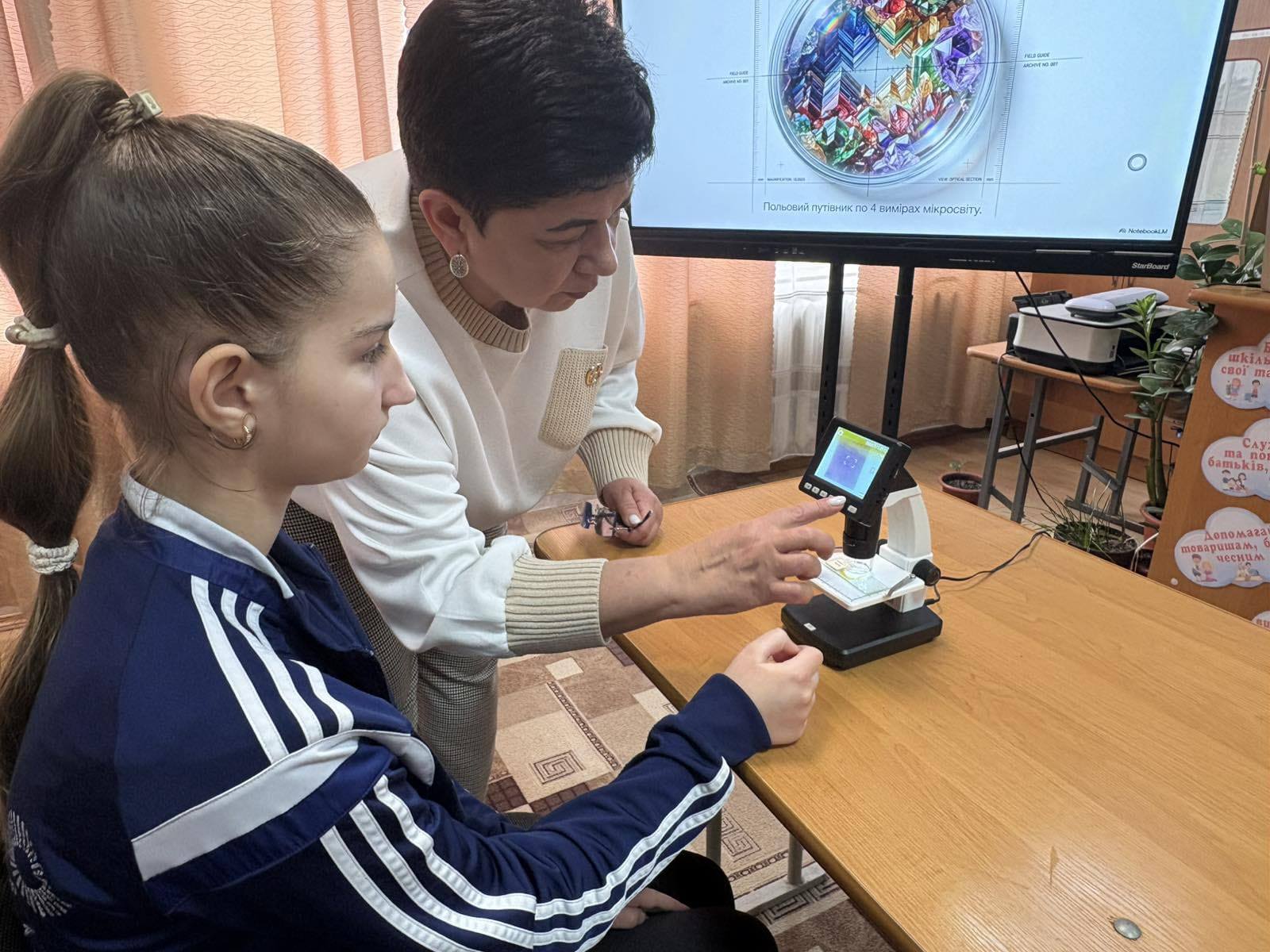 «День мікроскопа» став часом дивовижних наближень. Учні розглядали структуру грошових купюр, кристали цукру та солі. А 6-класники досліджували світ через гербарії та колекції гірських порід.