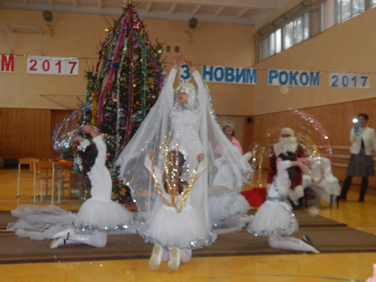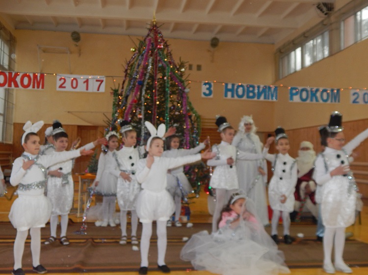 Осторонь не залишились і вихованці нашої школи, які порадували Діда Мороза та Снігуроньку цікавими інсценівками, запальними новорічними танцями, хороводами навколо ялинки та участю у веселих конкурсах.