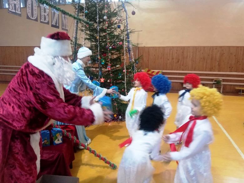 Кульмінацією свята було новорічне привітання від Діда Мороза та вручення солодких подарунків дітлахам.