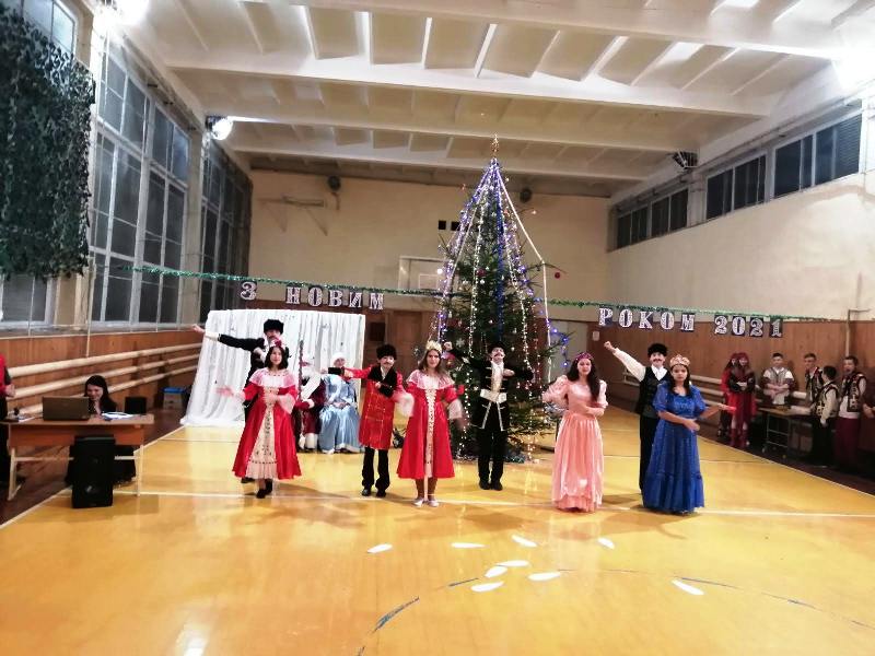 Не обминув радісний, святковий настрій і нашу школу. Коли діти дорослішають, дуже важливо зуміти зберегти у їх серцях віру в чудеса. А Новий рік - це свято, коли чудеса трапляються кожну секунду. Всі учні з нетерпінням чекали цього дня, коли до них завітає чарівна Новорічна казка з Дідом Морозом, Снігуронькою, подарунками. Чекали і дочекались! Напередодні канікул у школі відбулися Новорічні свята для учнів початкової школи, учнів 5- 12 класів. У цікавій формі пройшло новорічне свято для учнів середньої та старшої ланки, у якому приймали участь не тільки учні, а й педагоги. Кожен клас розіграв цікаву інсценівку, в якій показав зустріч Нового року в різних країнах світу.