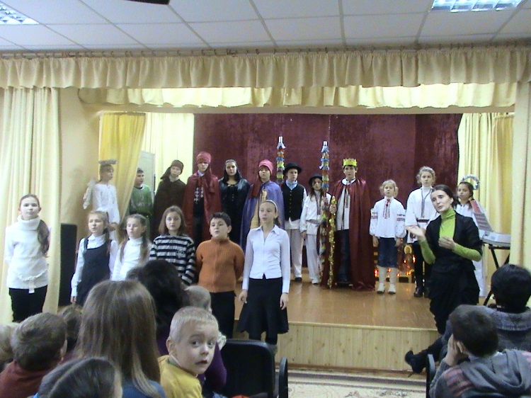 У гості до школярів прийшли учасники дитячої групи з Собору Кирила і Мефодія і виступили з концертною різдвяною програмою.