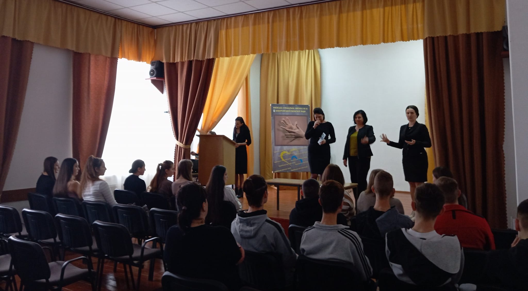 До Хустської спеціальної школи завітали представники Горінчівського міжшкільного ресурсного центру з профорієнтаційною роботою. Центр сприяє вибору учнями напряму профільного навчання у закладах загальної середньої освіти шляхом проведення профорієнтаційної роботи, впровадженням професійно спрямованих курсів за вибором, факультативів, гуртків. Керівниця центру Ревть Ярослава, її команда з викладачів та здобувачів освіти радо відповіли на всі питання потенційних абітурієнтів та презентували змістовне відео про заклад. Учениці поділились своїми враженнями про напрямки діяльності в центрі та презентували смаколики, що виготовили на заняттях з кулінарного мистецтва.