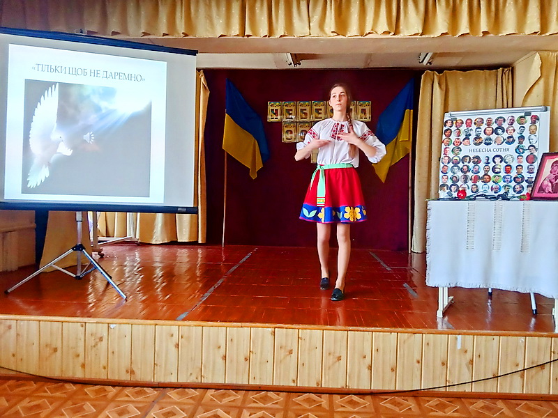 Учні школи підготували вірші, які вшановують героїчність, само відвагу та незаперечну мужність таких різних людей, які об’єднались на Майдані однією святою метою – бажанням кращого майбутнього для нашої країни, для кожного з нас.