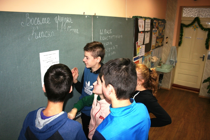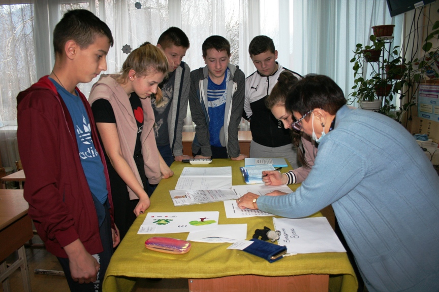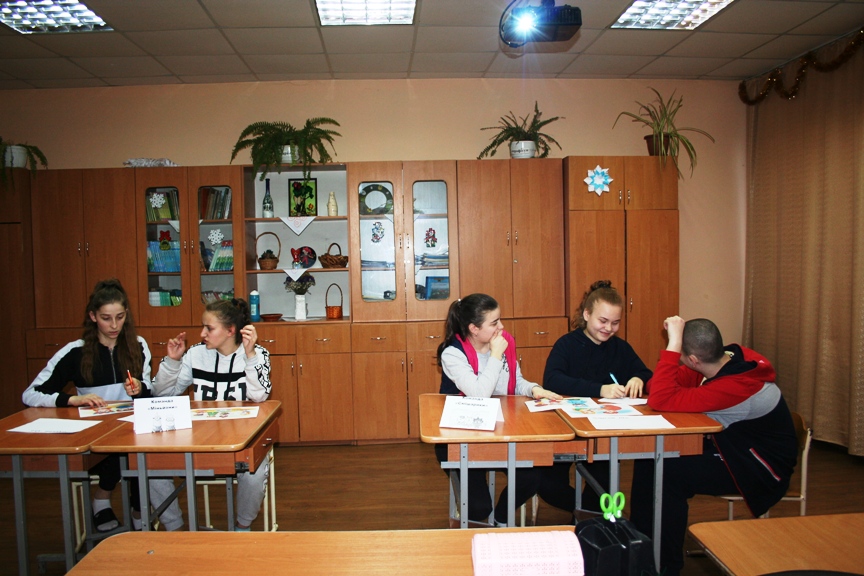 Дев'ятикласники на уроці правознавства розгадували правовий кросворд.