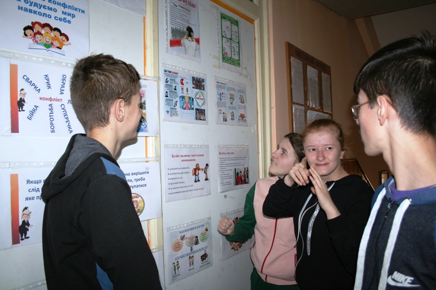 Тиждень права розпочався з мовно-ілюстративної виставки, яку підготували педагоги та учні 11 класу. Для учнів 5-6 класів вчителем історії та правознавства Голяк Я.А. було проведено урок «Стоп булінг!» На уроці учні переглянули презентацію та виконання вправ та завдань для протидії булінгу.