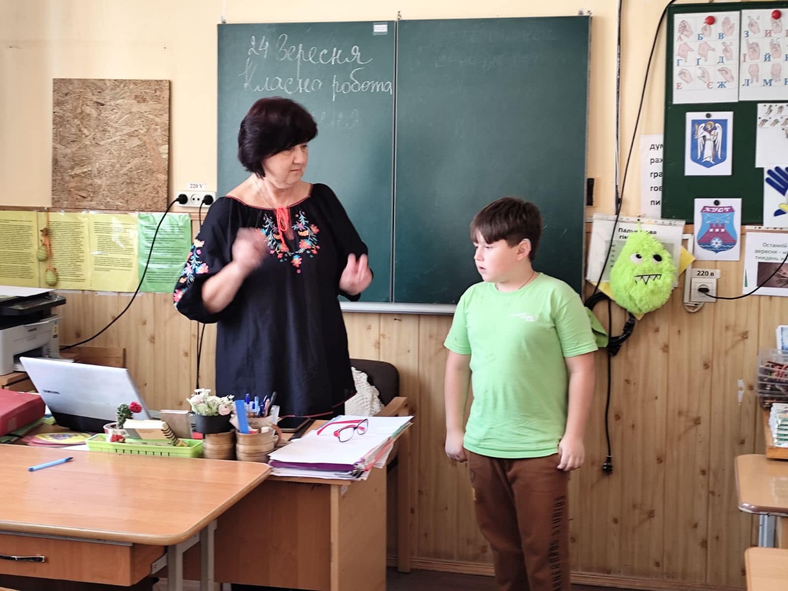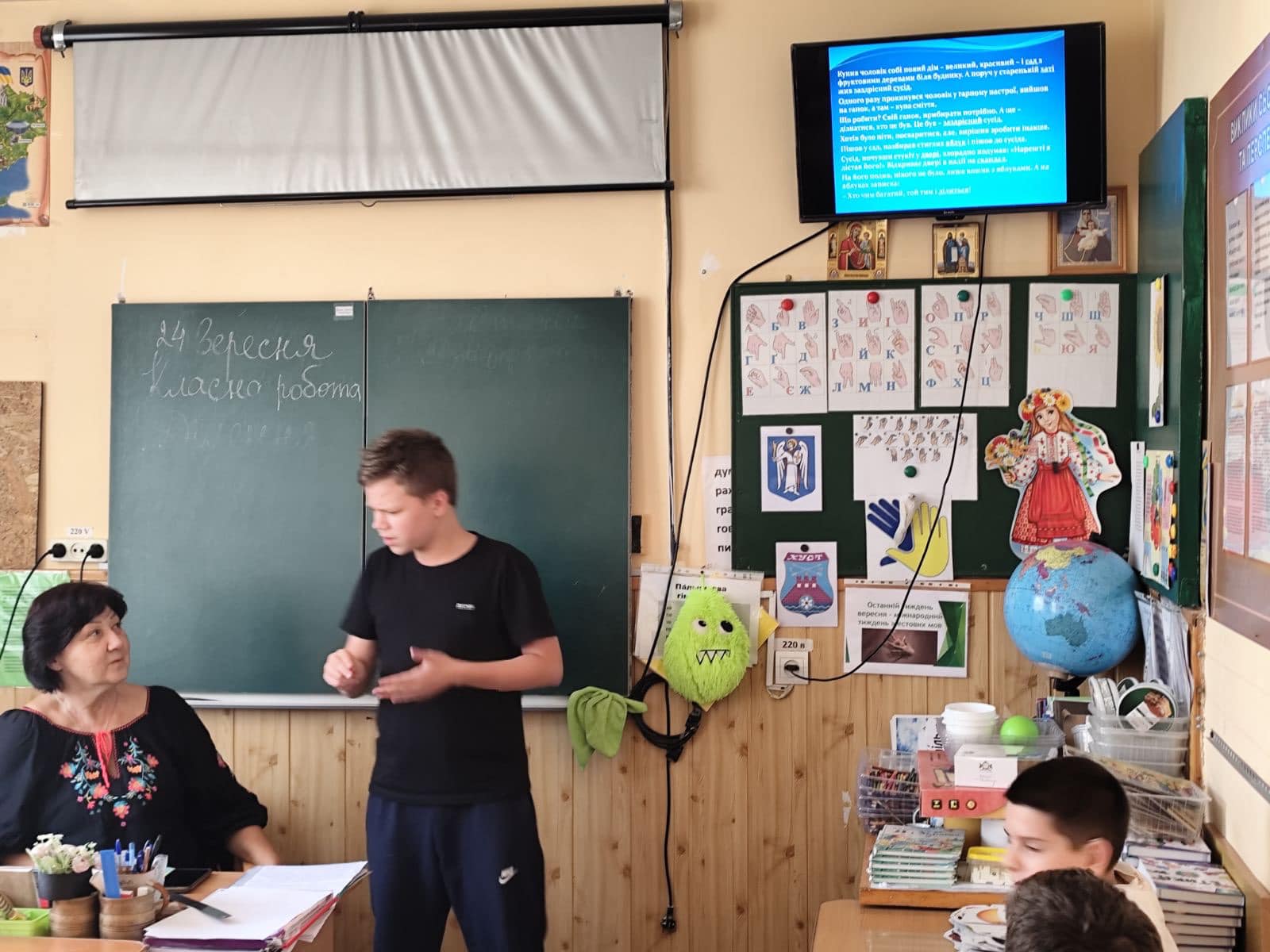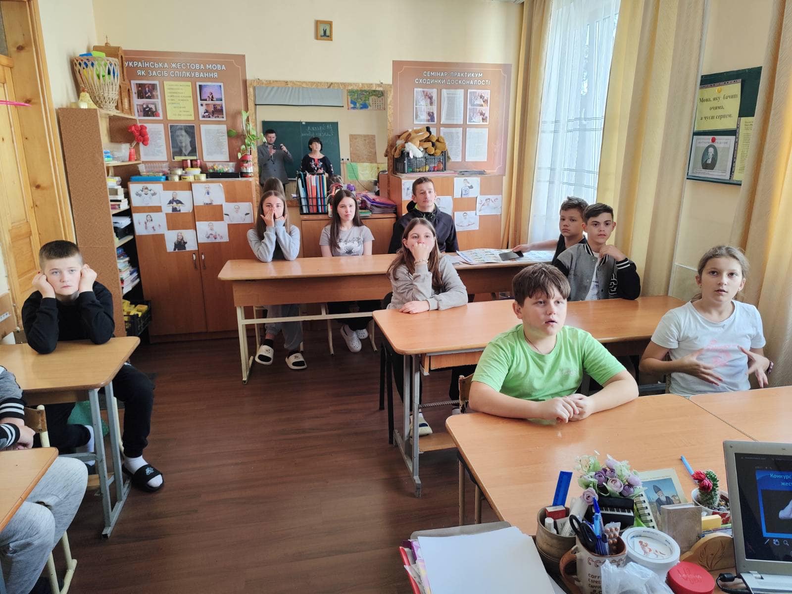 Саме в контексті цього сьогодні був проведений конкурс перекладачів УЖМ з учнями 5-12 класів. Вихованці, як завжди, були дуже активними та винахідливими у підборі жестових відповідників до непростих притчових текстів, з глибоким змістом та мораллю. Конкурс є конкурс! Треба трохи постаратися. Раптом хтось з них вибере цю нелегку, але цікаву професію - перекладача жестової мови...
