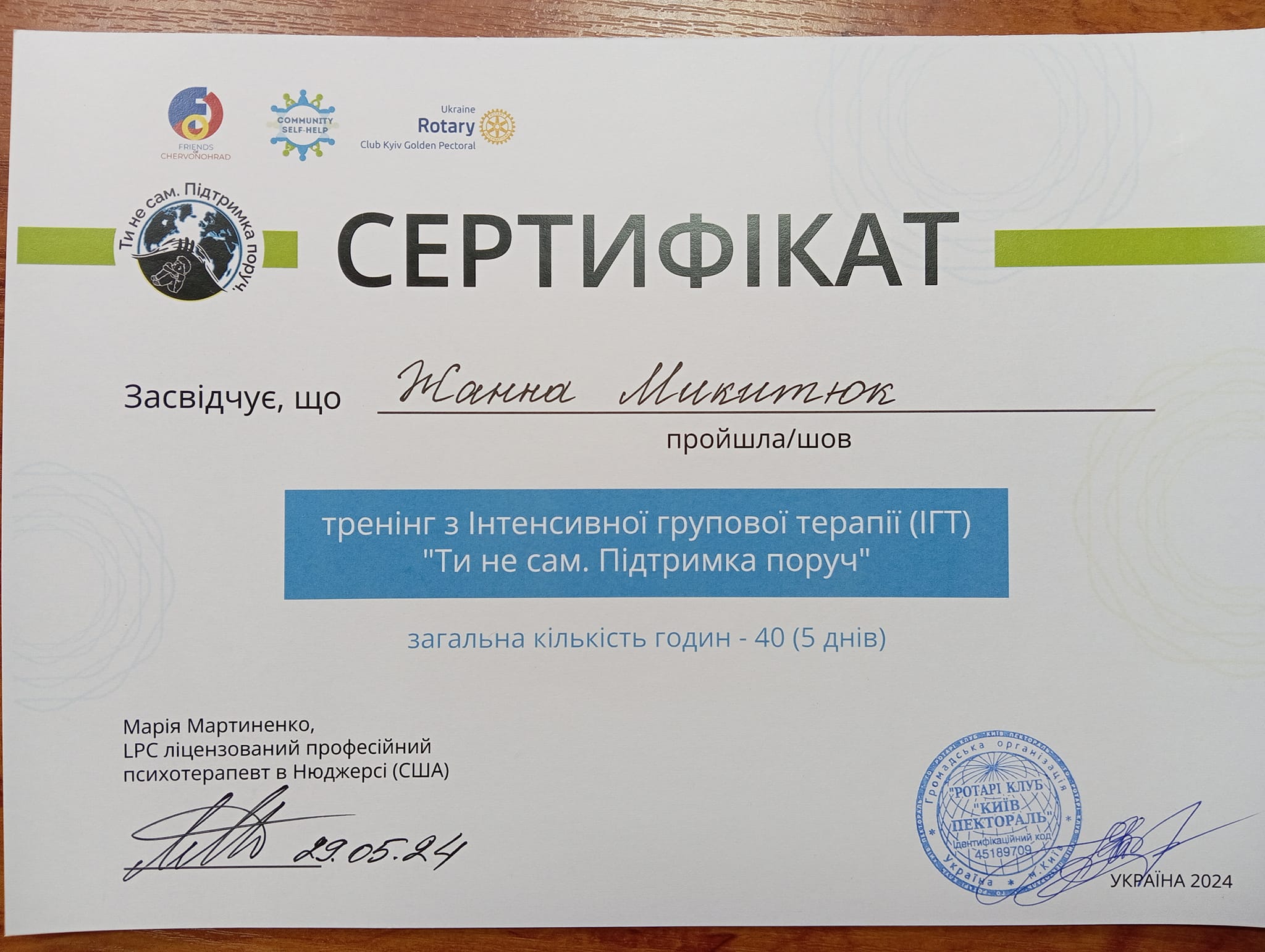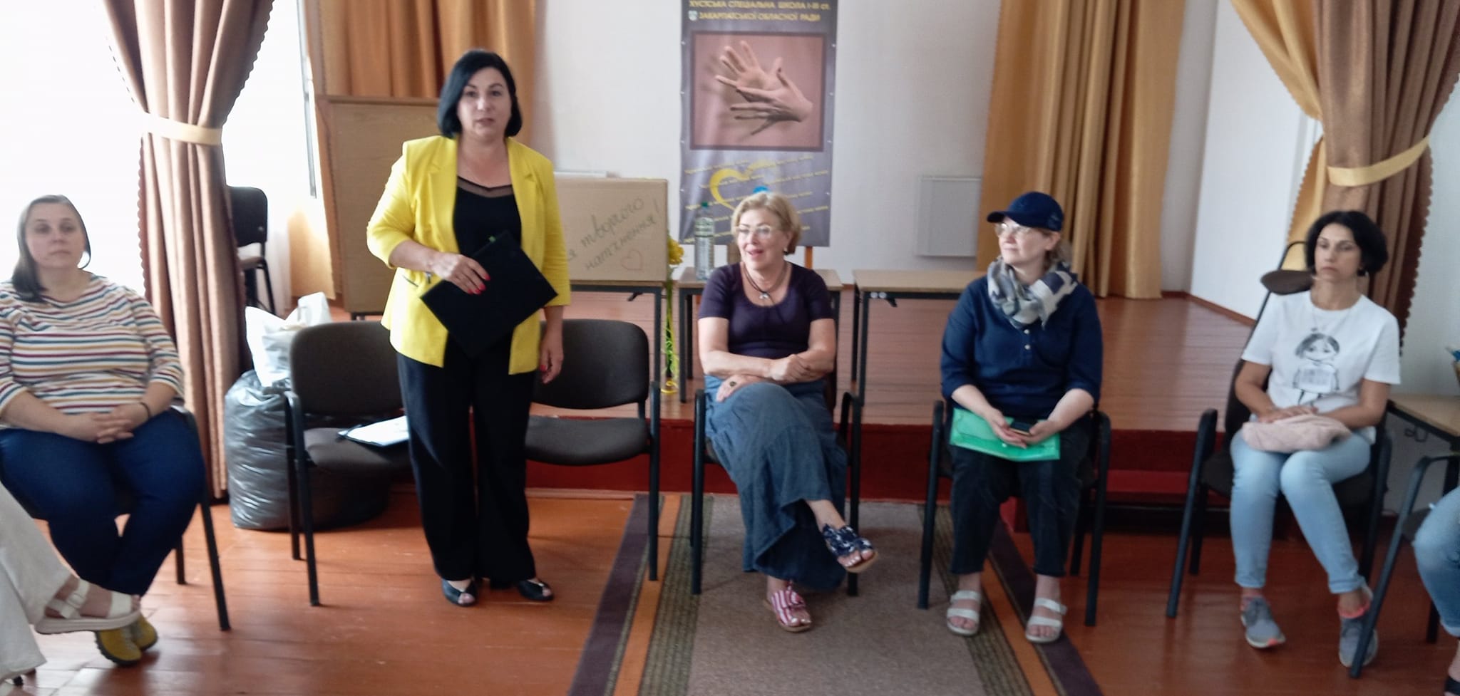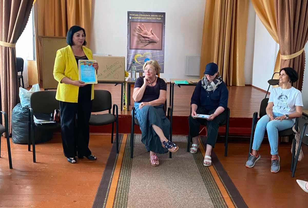У Хустській спеціальній школі І-ІІІ ступенів Закарпатської обласної ради було проведено тренінг-консультацію для педагогів школи з питань роботи з дітьми, які мають труднощі з концентрації уваги, поведінкові порушення. Консультації здійснили Марія Мартиненко, психотерапевт з США, Інна Тесленко, керівниця Rotary Club Kyiv Golden Pectoral.