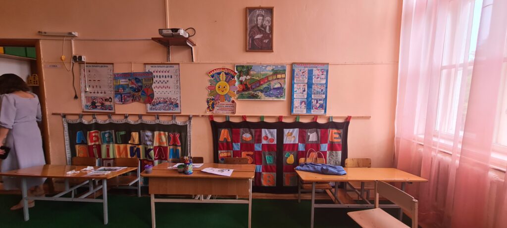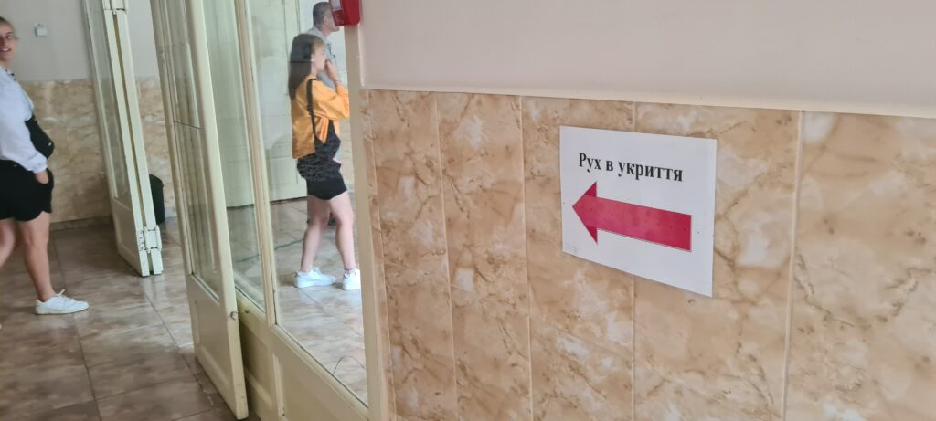 Далі пролунав дзвінок, запросивши дітей на перший урок. Також у стінах закладу була проведена навчальна тривога. Усі присутні попрямували в спеціально облаштоване укриття, де Жанна Миколаївна розповіла детально про те, якими будуть дії колективу та дітей у час, коли лунатиме справжня повітряна тривога. Приміщення облаштували згідно норм, тут є все необхідне для перебування.