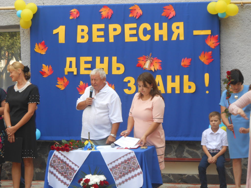 1 вересня - День Знань. Усі шляхи цього дня ведуть до школи. Розпочинається новий навчальний рік, який завжди означає відкриття нової, осяйної і .зазвичай, нелегкої дороги - дороги до знань, до нових звершень. Не менш важливим він буде для учнів 12 класу, яким доведеться обирати професію, які будуть втілювати отримані знання в дорослому житті. Яким буде їх вибір - залежить тільки від них. Зі словами вітань до шкільної спільноти, батьків, педагогів звернувся директор школи Деленко Б.В.