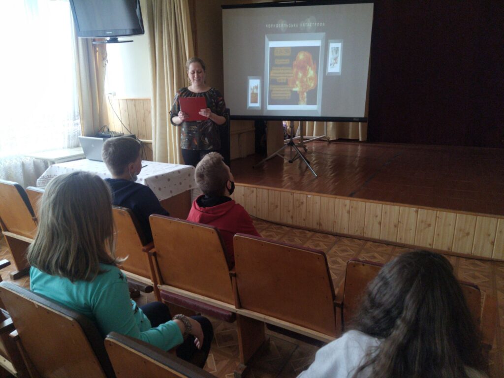 Педагоги 5-го класу підготували презентацію на тему: «Чорнобильська катастрофа». Як давно це було, але сумні плоди радіактивного випромінення ми пожинаємо до цих пір. Це головна думка, що пронизувала весь шкільний захід. Основні висновки, які ми всі маємо для себе зробити, це те, до чого може привести недобросовісне відношення до своїх обов'язків.