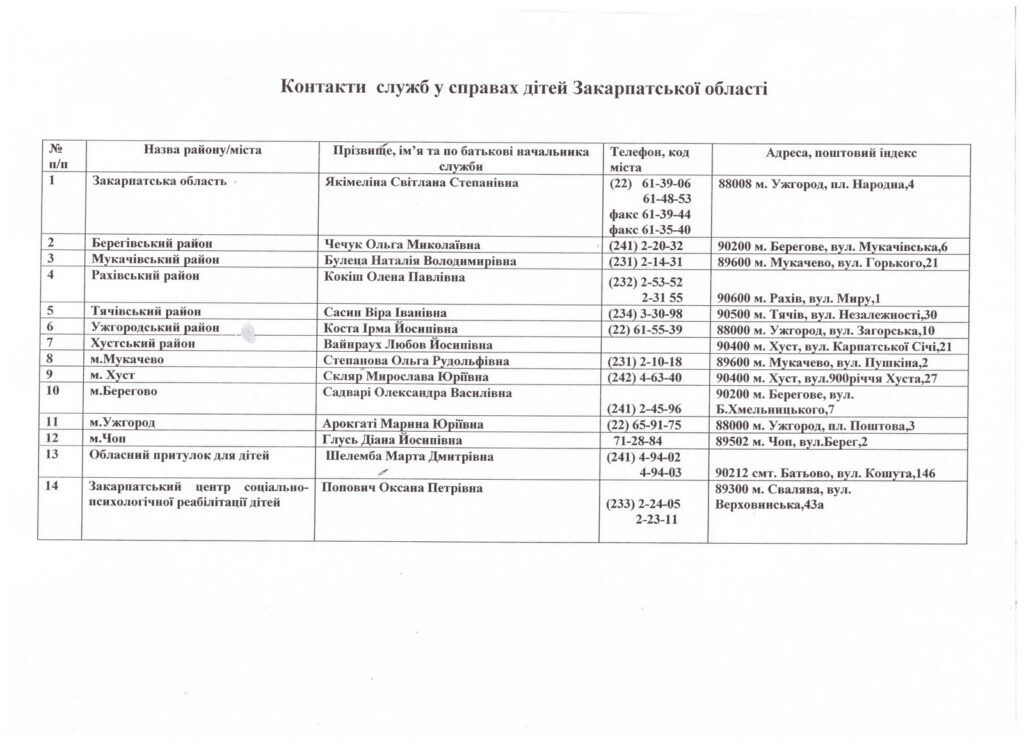 Про Нас Контакти служб у справах дітей в Закарпатській області Методична робота Перейти Реабілітаційна робота Перейти Сторінка психолога Перейти Виховна робота Перейти