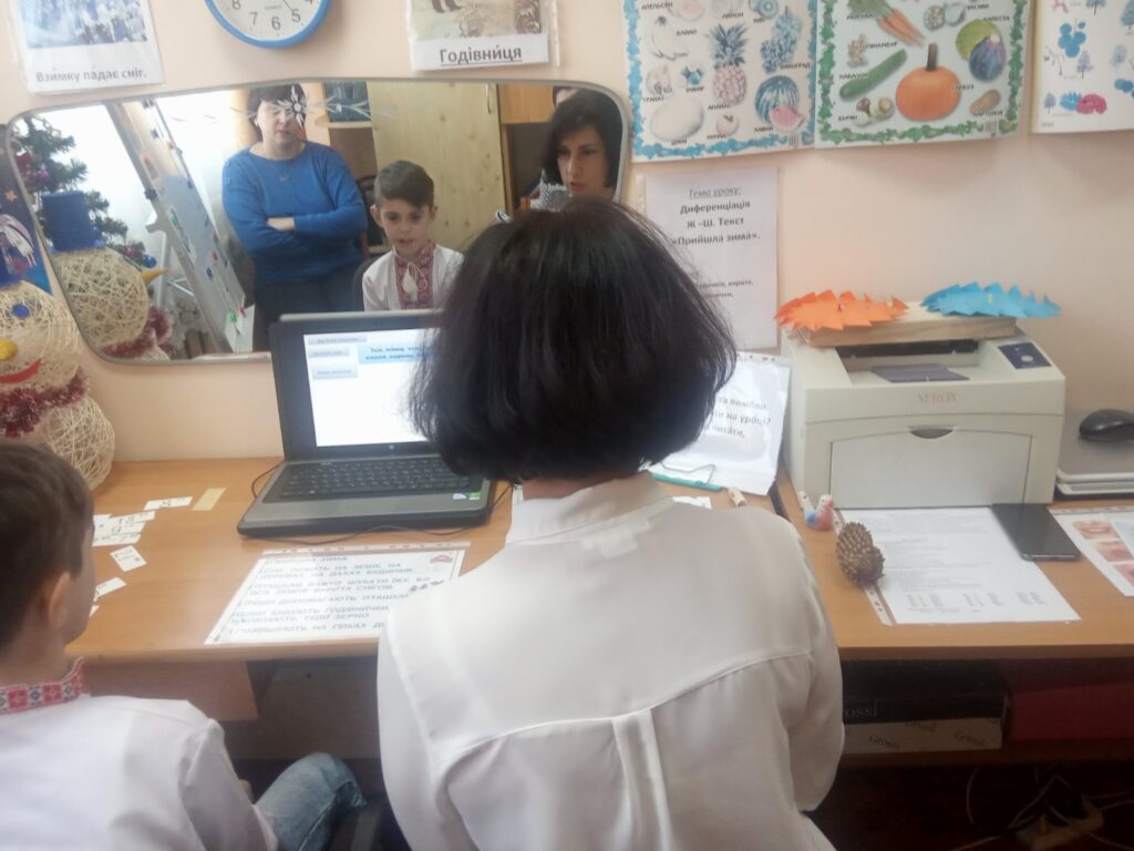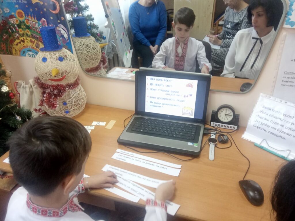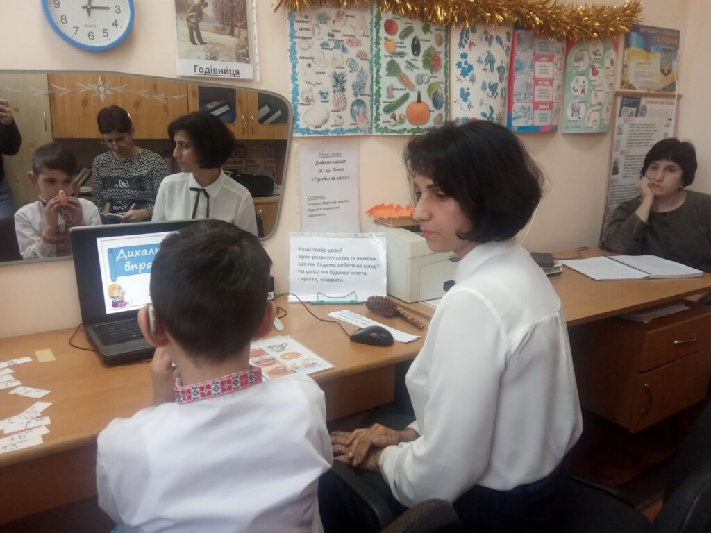 Із учнем 4 класу Данилюком Артемом вчителька Цуцков Маргарита Михайлівна провела відкритий урок з розвитку слухового сприймання та формування вимови на тему "Диференціювання звуків Ж-Щ. Текст "Прийшла зима". На уроці Маргарита Михайлівна закріпила диференціацію звуків "Ж-Щ" у складах, словах і розвивала вміння дотримуватися тону, сили та висоти голосу; збагачувала словниковий запас учня шляхом уточнення слів , речень. Проведена робота над слуховим сприйманням тексту " Прийшла зима" та відтворення його за запитаннями