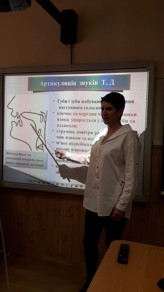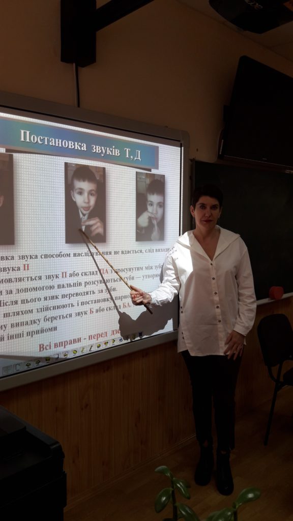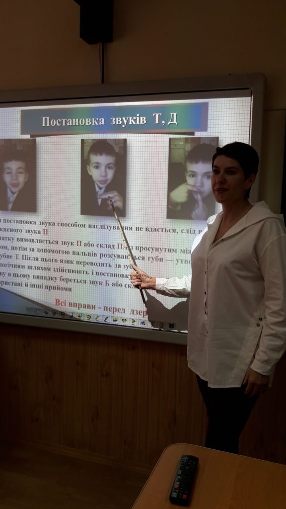 Віталіна Юріївна використала сучасні технології для демонстрації, продемонструвала механічний спосіб постановки звука К та сприяла практичному вдосконаленню знань вчителів.