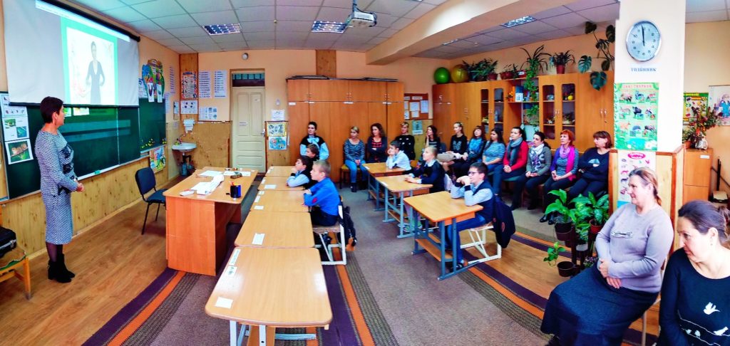 Даний захід мав на меті акцентувати увагу педагогів на можливості використання української жестової мови та різних форм і прийомів роботи з казкою для активації мовленнєвої діяльності учнів. Основна частина семінару була представлена у вигляді цікавого майстер-класу, де Віталіна Юріївна з учнями 4 класу показала різні види роботи з казкою «Лисичка та Журавель».