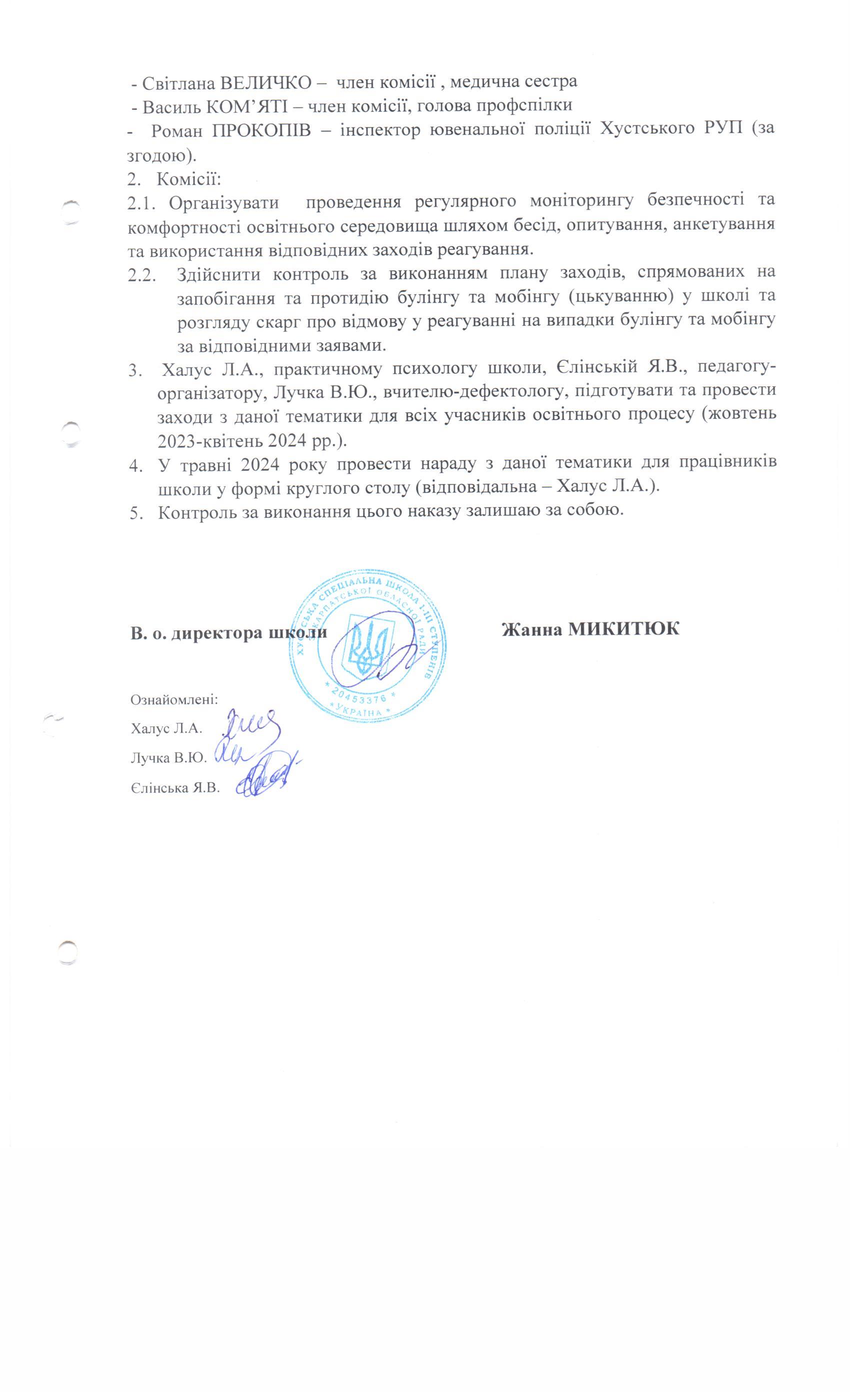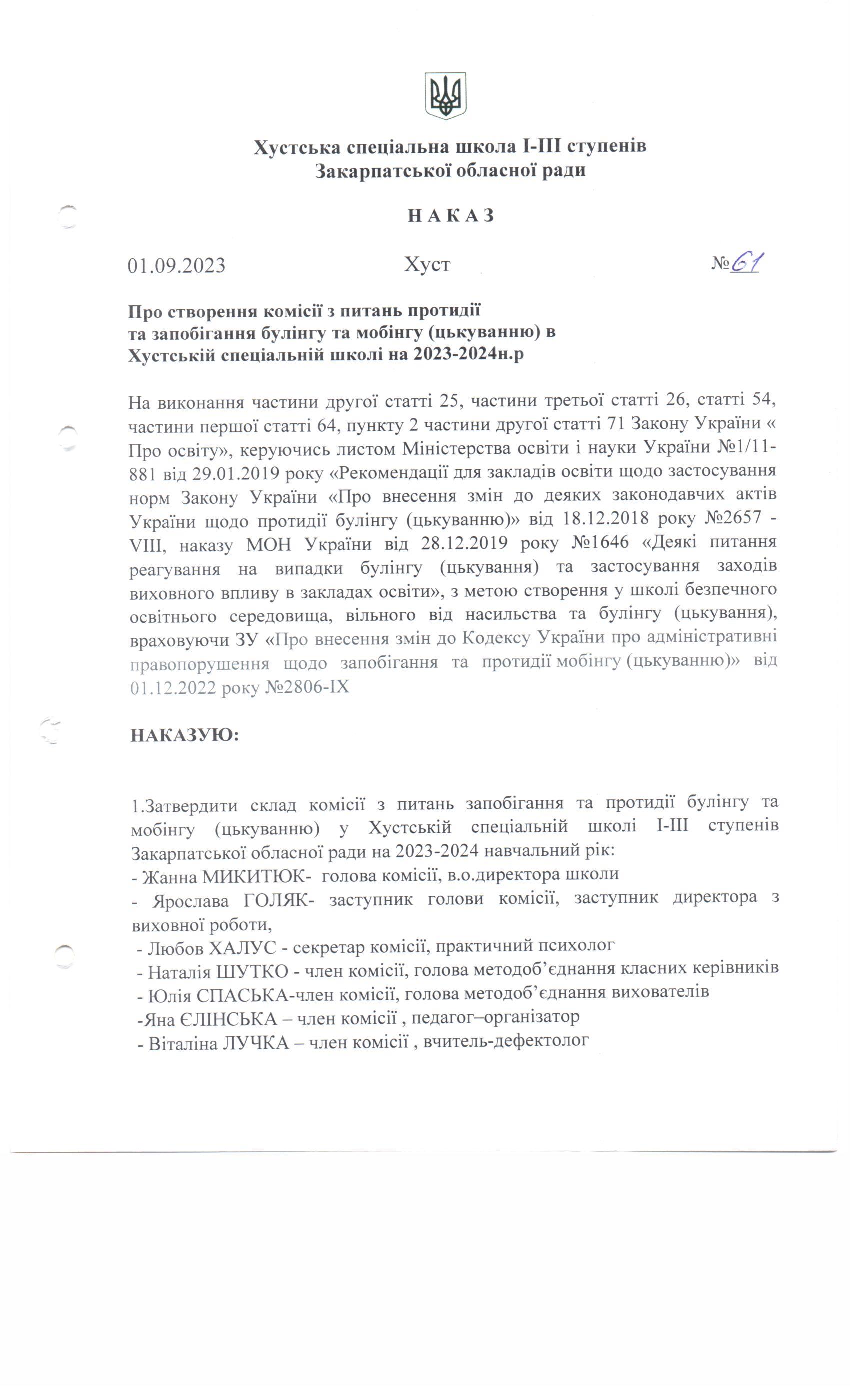 Порядок реагування на доведені випадки булінгу (цькування) в закладі освіти та відповідальність осіб, причетних до булінгу (цькування)