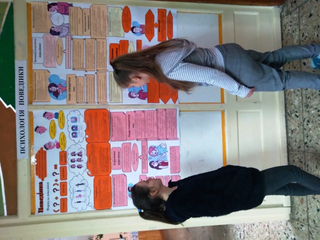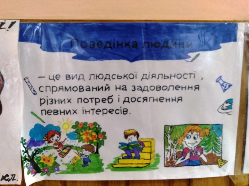 Він розпочався ознайомленням учнів з мовно – ілюстративним кутком на тему: «Психологія поведінки». Учні мали можливість ознайомитися з цікавою та потрібною інформацією про психологічні категорії поняття «поведінка».